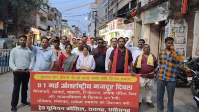 रायगढ़. ट्रेड यूनियन काउंसिल द्वारा 1मई अंतर्राष्ट्रीय मजदूर दिवस के अवसर पर स्थानीय सत्ती गुड़ी चौक में शाम 5 बजे…
