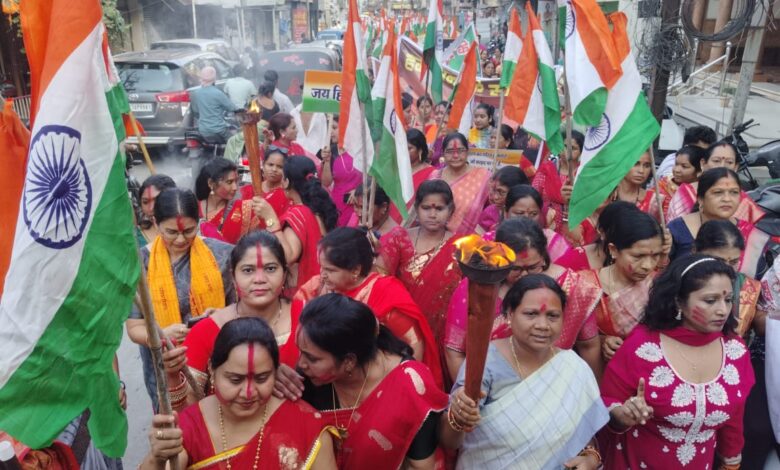 *राष्ट्रीय सुरक्षा के लिए एकजुट होकर शहर की महिलाओं ने निकली सिंदूर तिरंगा यात्रा*