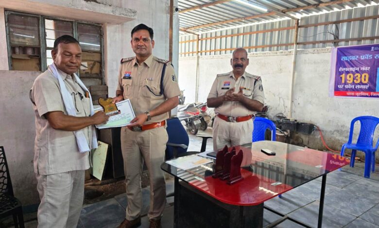 *रायगढ़, 08 जून* । पुलिस अधीक्षक श्री दिव्यांग कुमार पटेल के निर्देश पर जिले के सभी थाना क्षेत्रों में उन नागरिकों का उत्साहवर्धन किया जा रहा है जो अपने कार्यक्षेत्र में समर्पण और निष्ठा से कार्य कर समाज के लिए प्रेरणा का स्रोत बन रहे हैं। इसी क्रम में जूटमिल थाना क्षेत्र में रविवार को थाना प्रभारी निरीक्षक प्रशांत राव आहेर द्वारा दो चरणों में विशेष कार्यक्रम आयोजित किया गया।
