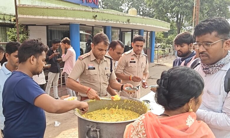 सावन के अंतिम सोमवार पर कोतरारोड पुलिस बनी श्रद्धालुओं की सेवा का प्रतीक, पुलिसकर्मियों ने थाना परिसर में श्रद्धालुओं में किया प्रसाद वितरण