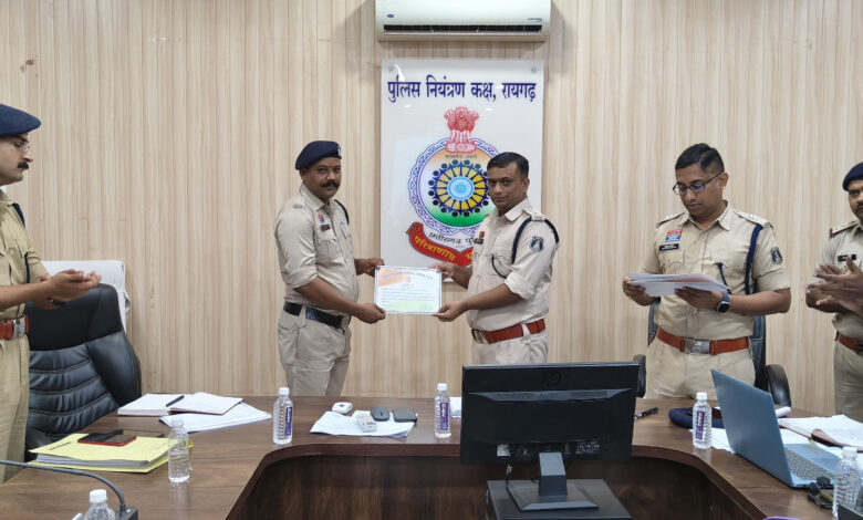 समीक्षा बैठक के दौरान उत्कृष्ट कार्य करने वाले पुलिसकर्मियों को प्रशस्ति पत्र देकर सम्मानित किया गया। थाना कोतवाली के आरक्षक लोमेश सिंह राजपूत और प्रदीप मिंज को ओडिशा (झारसुगुड़ा) से मारपीट के आरोपी की गिरफ्तारी, जूटमिल थाना के प्रधान आरक्षक वीरेंद्र भगत, आरक्षक परमानंद पटेल और महिला आरक्षक आशा सिदार को 17 वर्षीय बालिका को जबलपुर (मध्यप्रदेश) से दस्तयाब करने, प्रधान आरक्षक मोहम्मद दिलदार कुरेशी और आरक्षक लखेश्वर पुरसेठ को हीरो होंडा शोरूम से नगदी की शत-प्रतिशत बरामदगी, तमनार थाना के प्रधान आरक्षक बनारसी लाल सिदार और हेमंत पात्रे को उड़ीसा से गुम महिला की दस्तयाबी, घरघोड़ा थाना क्षेत्र में हत्या के मामले में 3 घंटे में आरोपी की गिरफ्तारी में सराहनीय भूमिका निभाने वाले प्रधान आरक्षक पारसमणी बेहरा और आरक्षक हरीश पटेल, तथा कापू थाना क्षेत्र की गुम बालिका को झारखंड से बरामद कर लाने में उल्लेखनीय योगदान देने वाले प्रधान आरक्षक मनोज सिंह, आरक्षक संजीव पटेल एवं विक्रांत भगत को प्रशस्ति पत्र प्रदान कर उनका उत्साहवर्धन किया गया। बैठक में एडिशनल एसपी आकाश मरकाम, नवपदस्थ सीएसपी श्री मयंक मिश्रा, एसडीओपी खरसिया/सायबर सेल श्री अनिल विश्वकर्मा, एसडीओपी धरमजयगढ़ सिद्धांत तिवारी, ट्रैफिक डीएसपी श्री उत्तम प्रताप सिंह तथा सभी थाना, चौकी प्रभारी उपस्थित रहे ।