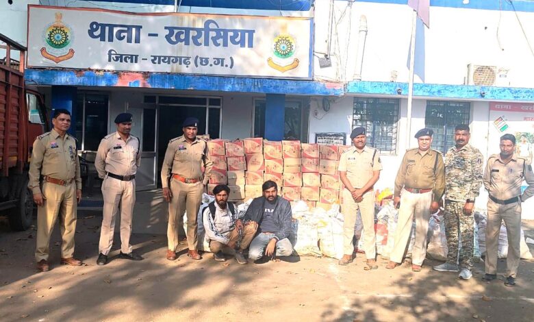 खरसिया पुलिस ने कंटेनर वाहन से परिवहन की जा रही ₹94.08 लाख अवैध शराब की बड़ी खेप को पकड़ा, दो तस्कर गिरफ्तार