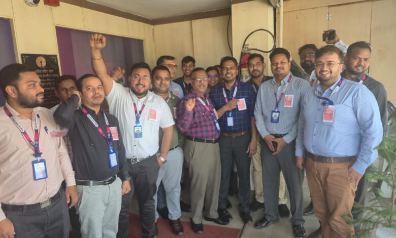 UFBU के आह्वान पर हड़ताल के पूर्व के आंदोलनात्मक कार्यक्रमों के तहत 28 फरवरी 2025 शुक्रवार को बेज वियरिंग अभियान ।