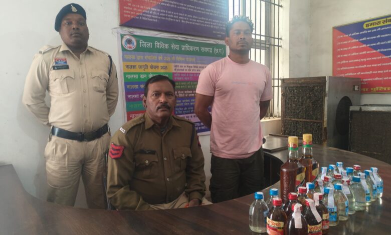 ➤ कोतवाली पुलिस : जोगीडिपा में अवैध शराब बिक्री पर कार्रवाई, 25 पाव देशी शराब और 2 बॉटल अंग्रेजी शराब के साथ आरोपी गिरफ्तार थाना प्रभारी कोतवाली निरीक्षक सुखनंदन पटेल एवं टीम द्वारा जोगीडीपा निवासी बलराम सहिस (36 वर्ष) को अवैध शराब के साथ गिरफ्तार किया गया। सूचना मिली थी कि आरोपी किराना दुकान की आड़ में अवैध शराब बिक्री कर रहा है। रेड के दौरान प्रारंभिक इंकार के बाद सख्ती से पूछताछ करने पर आरोपी ने दुकान से *19 पाव देशी प्लेन, 06 पाव देशी मसाला तथा 02 बोतल मैकडावल नंबर वन अंग्रेजी शराब कुल 06.00 बल्क लीटर (कीमत 3640 रुपये)* निकालकर पेश किया। जप्ती उपरांत आरोपी के विरुद्ध थाना कोतवाली में धारा 34(2), 59(क) आबकारी एक्ट के तहत प्रकरण दर्ज कर उसे न्यायिक रिमांड पर जेल भेजा गया है। कार्रवाई में प्रधान आरक्षक हेमंत चन्द्रा, आरक्षक जितेन्द्र दुबे एवं कमलेश यादव शामिल रहे।