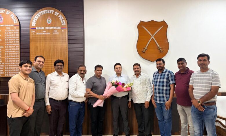 रायगढ़ के नव पदस्थ एसएसपी शशि मोहन सिंह से रायगढ़ चैम्बर के पदाधिकारियों की सौजन्य मुलाकात, व्यापारिक समस्याओं पर हुई चर्चा