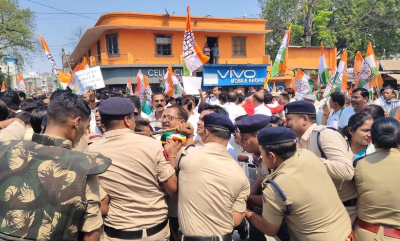 नशे के खिलाफ कांग्रेस का हल्ला बोल,भाजपा कार्यालय घेराव में उमड़ा जनसैलाब, ———————————————-बैरिकेडिंग तोड़ने की कोशिश करते कांग्रेस कार्यकर्ता और पुलिस के बीच झड़प
