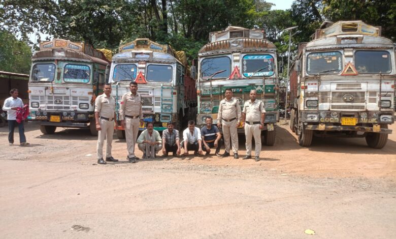 🚨 4 आरोपी चालक गिरफ्तार— सभी ट्रकों में अवैध स्क्रैप, किसी के पास वैध दस्तावेज नहीं