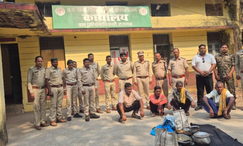 वन मंडलाधिकारी रायगढ़ वनमंडल से प्राप्त जानकारी के अनुसार तलाशी के दौरान अलग-अलग आरोपियों के घरों से पकाया हुआ वन्यप्राणी मांस बरामद किया गया। इसमें आत्माराम पिता धनीराम के घर से 0.400 किग्रा, हरिशंकर वल्द लक्ष्मीनारायण साव के घर से 1.400 किग्रा तथा तरूण वल्द त्रिनाथों के घर से 0.500 कि.ग्रा. पका हुआ मांस जब्त किया गया। वहीं चौथे आरोपी मोतीराम वल्द बुद्धराम राठिया के घर से प्राप्त जानकारी के अनुसार लगभग 1 कि.ग्रा.मांस को पहले ही पकाकर खा लिया गया था, जिसकी पुष्टि उनके बयान से हुई। इस पूरे मामले में वन विभाग द्वारा पीओआर प्रकरण क्रमांक 7541/08 दिनांक 16 अप्रैल 2026 दर्ज किया गया है। सभी आरोपियों को गिरफ्तार कर नियमानुसार कार्रवाई करते हुए माननीय न्यायालय के समक्ष प्रस्तुत किया जा रहा है। वन विभाग ने मामले को गंभीर मानते हुए आगे की जांच शुरू कर दी है, ताकि वन्यजीव संरक्षण अधिनियम के तहत दोषियों पर सख्त कार्रवाई सुनिश्चित की जा सके।