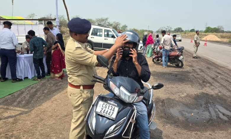 *रायगढ़, 22 मार्च* । पुलिस अधीक्षक श्री दिव्यांग कुमार पटेल के निर्देशन में सड़क सुरक्षा को लेकर यातायात पुलिस लगातार अभियान चला रही है। इसी क्रम में आज नेशनल हाईवे-49 के ग्राम जोरापाली में उप पुलिस अधीक्षक (यातायात) श्री उत्तम प्रताप सिंह के नेतृत्व में कार्रवाई की गई, जिसमें बिना हेलमेट दोपहिया वाहन चालकों पर नियमानुसार मोटर व्हीकल एक्ट के तहत चालानी कार्रवाई की गई और इस मुहिम में जिंदल फाउनडेशन द्वारा उपलब्ध कराये गये करीब 100 वाहन चालकों को निशुल्क हेलमेट वितरण किया गया । इस अवसर पर जिला पंचायत अध्यक्ष प्रतिनिधि श्री रविंद्र गवेल सहित स्थानीय जनप्रतिनिधि, जिंदल फाउनडेशन के सदस्यगण भी उपस्थित रहे। उन्होंने भी वाहन चालकों को हेलमेट वितरित कर यातायात नियमों के प्रति जागरूक किया। कार्यक्रम के दौरान दोपहिया चालकों को हेलमेट पहनने, गति सीमा का पालन करने और नशे में वाहन न चलाने जैसे नियमों का पालन करने की सलाह दी गई। डीएसपी श्री उत्तम प्रताप सिंह ने बताया कि यातायात पुलिस द्वारा नियमित जांच और जागरूकता अभियानों के कारण सड़क दुर्घटनाओं में कमी देखी जा रही है। उन्होंने आम नागरिकों से अपील की कि वे यातायात नियमों का पालन करें और स्वयं को सुरक्षित रखें।