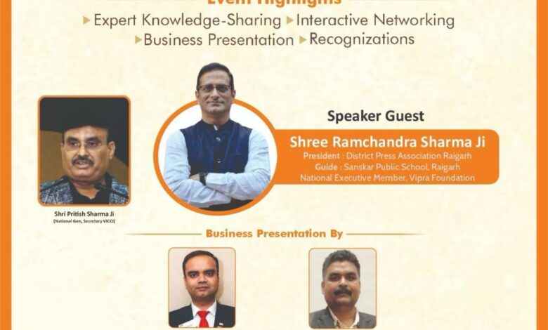 रायगढ़। विप्र चेंबर ऑफ कॉमर्स एन्ड इंडस्ट्री रायपुर द्वारा वी सी सी आई विक्की बिजनेस मीट का आयोजन रविवार 27 अप्रैल 2025 को प्रात: 10 बजे से होटल ग्रैंड राजपूताना तेलघानी नाका चौक रायपुर में किया जा रहा है। जिसमें उद्यमी अपने अनुभव साझा करेंगे व बिजनेस प्रेजेंटेशन देंगे। रायपुर में आयोजित होने वाले इस कार्यक्रम के विशेष अतिथि रायगढ़ के शिक्षाविद एवं मोटिवेटर रामचंद्र शर्मा स्पीकर के रूप में शामिल होंगे। ज्ञात हो कि रामचन्द्र शर्मा विभिन्न क्षेत्रों में सफलता का परचम लहरा चुके हैं। जिसमें सरकारी नौकरी के साथ-साथ व्यापार प्रबंधन, शैक्षणिक प्रबंधन, टीम लीडरशिप आदि में महारथ हासिल कर चुके हैं।उ वर्तमान में संस्कार पब्लिक स्कूल के मार्गदर्शक एवं वरिष्ठ पत्रकार तथा मोटिवेटर के रूप में घर-घर जाने जाते हैं। रामचन्द्र शर्मा के अलावा वीसीसीआई के नेशनल जनरल सेक्रेटरी प्रितीश शर्मा, अमितेश शर्मा, सत्येंद्र, वीआईसीसीआई के प्रेसिडेंट महेश शर्मा, जनरल सेक्रेटरी दीपक शर्मा, एवं ट्रेजरर योगेंद्र भारद्वाज की भी विशेष उपस्थिति रहेगी। ज्ञात हो कि पिछले समय आयोजित इस कार्यक्रम में रायपुर के डी आई जी मनीष शर्मा बतौर गेस्ट स्पीकर कार्यक्रम में शामिल हुए थे। और इस वर्ष रामचन्द्र शर्मा को गेस्ट स्पीकर के रूप में आमंत्रित किया गया है। प्रदेश की राजधानी में आयोजित इस कार्यक्रम में प्रदेश के अन्य जिलों से भी लोग पहुंचेंगे। कार्यक्रम को लेकर रायपुर में बड़ी तैयारी की जा रही है।